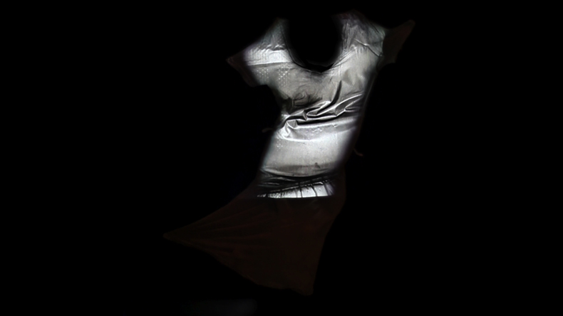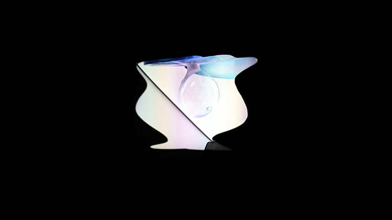 Video projector, media player, USB key with digital file, “instapak” packing material. Dimensions variable, duration 03:04, continuous projection. 2013